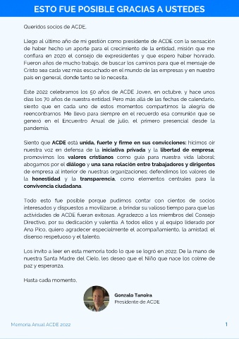 actividades de ACDE fueran exitosas. Agradezco a los miembros del Consejo
