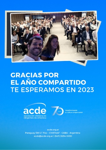 GRACIAS POR EL AÑO COMPARTIDO TE ESPERAMOS EN 2023 acde.org.ar Paraguay 580 2° Piso - C1057AAF - CABA - Argentina acde@acde.org.ar | (5411) 5254-0030